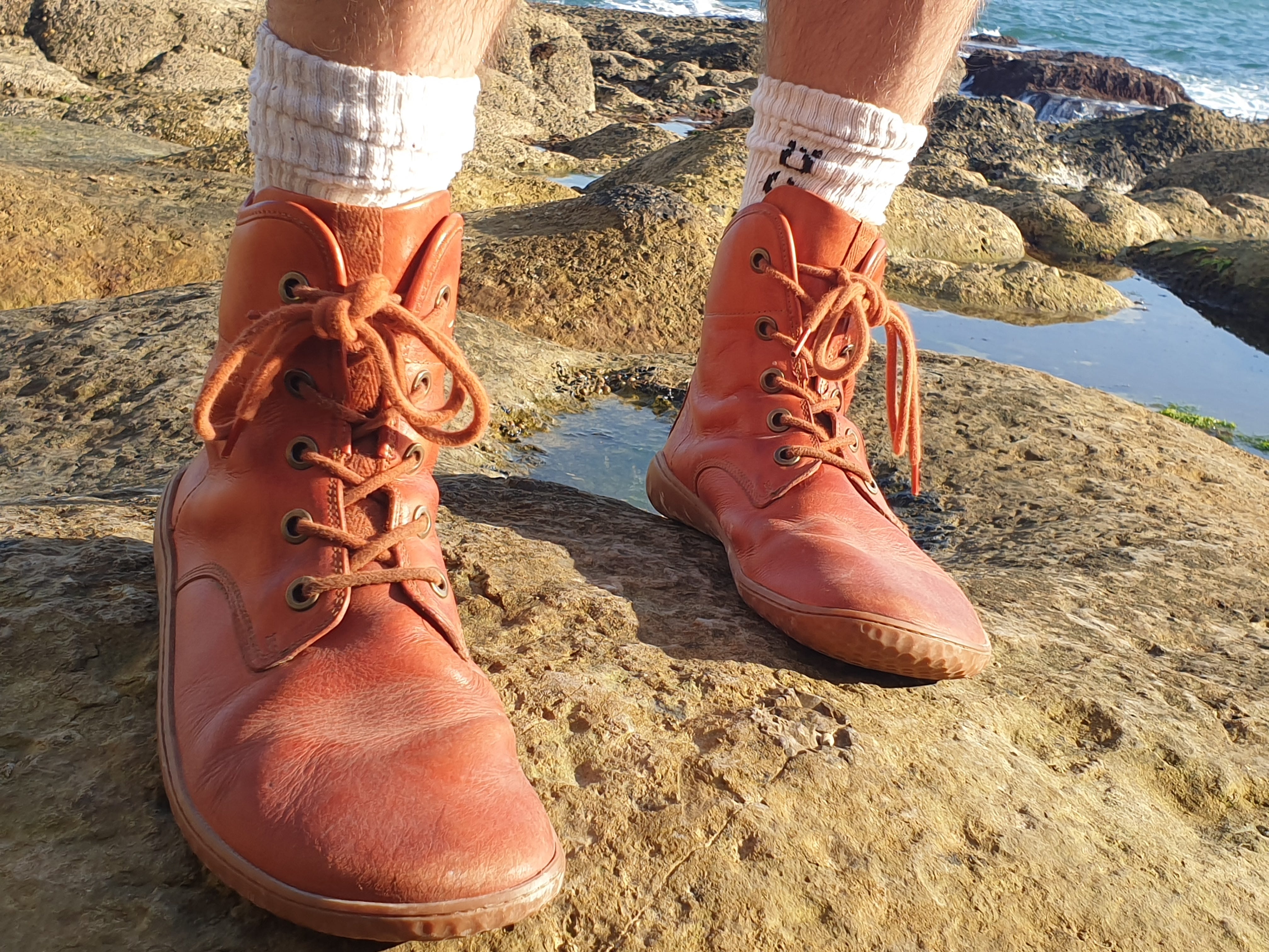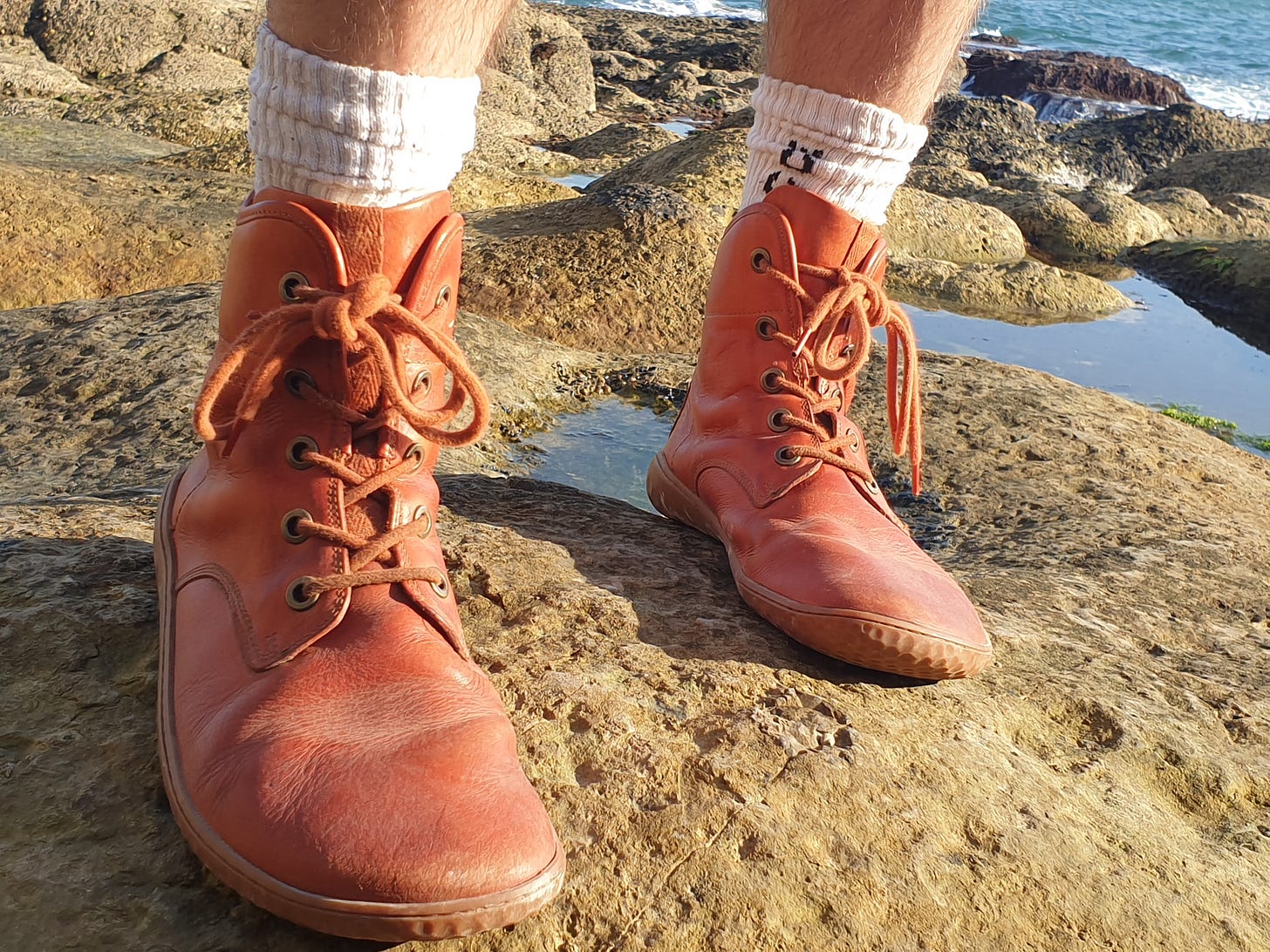 I now have three pairs! Two out of the three pairs can be slipped on without laces, one is the grounded boot. My man has a pair of the grounded boots too - well-worn as you can see in the photo below.