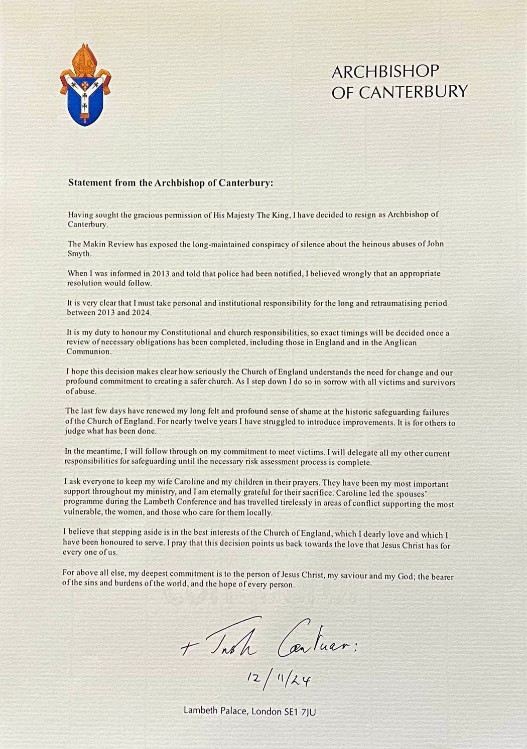 This is a quick post to let readers know that the Archbishop of the Church of England, Justin Welby, has resigned today - just a week after we raised again his treacherous role during the COVID chapter on this Substack. Welby’s resignation today, however, is in relation to his conspiratorial role in covering up the horrific sexual abuse of more than 100 boys and young men.