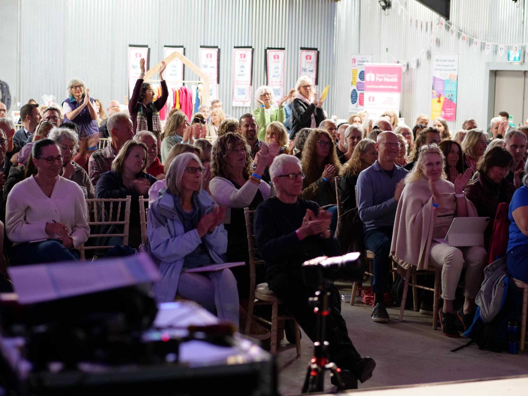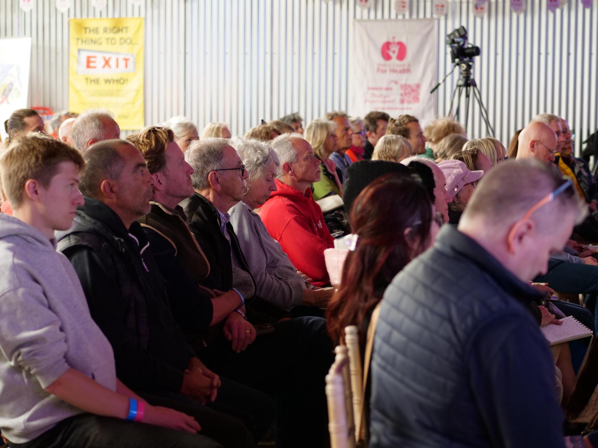 The enthusiastic audience inside the covered barn venue, which kept us dry and cosy during the occasional showers!