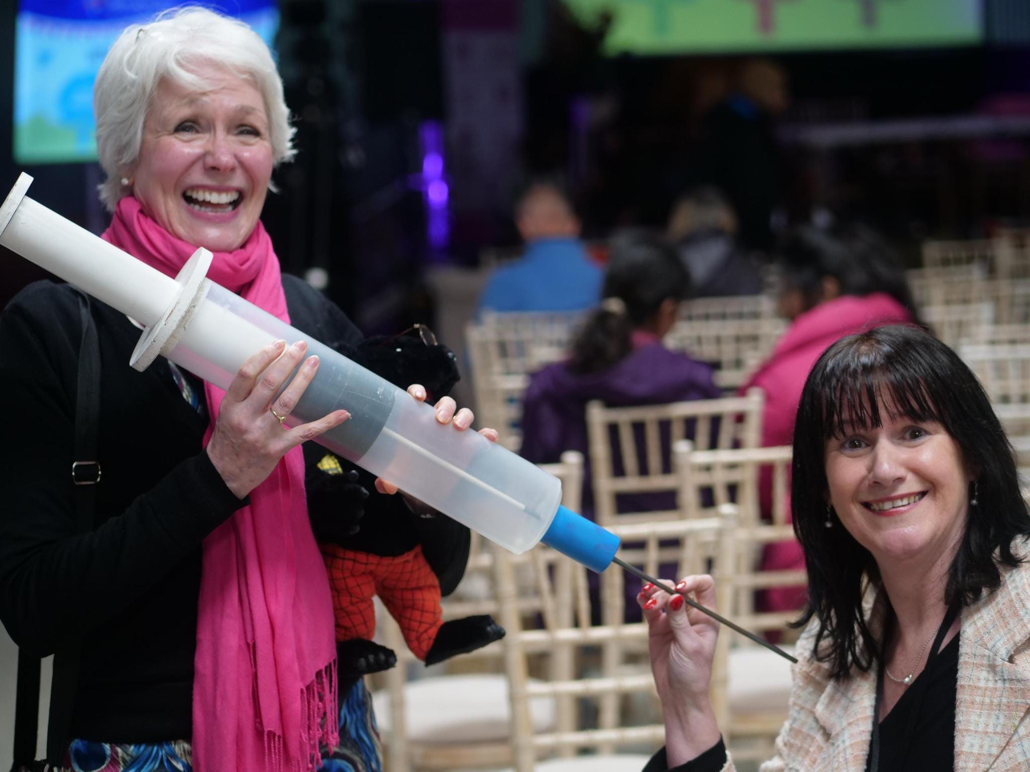 Jane Gunn, having a giggle between panels with therapy specialist Maureen Fearon. Both are on the WCH British Isles team.
