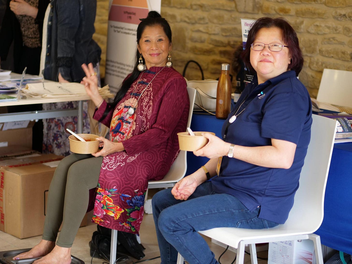 WCH Singapore steering committee member Wai Ching Lee with exhibitor Mei Mei.