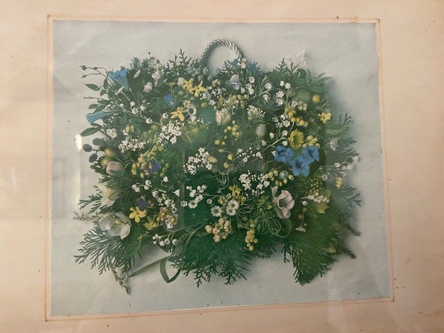 The latter used to be called Royal London Homeopathic Hospital; this was where Philippa’s great aunt, Dr Lena Banks, and her great aunt’s partner, Dr Marjorie Blackie, worked. Dr Blackie was the Queen’s Homeopath. Here’s the bouquet of flowers, plants and seeds used as sources of homeopathic remedies that Philippa’s Aunt Lena created for the Queen when she visited the hospital (of which she was a patron):